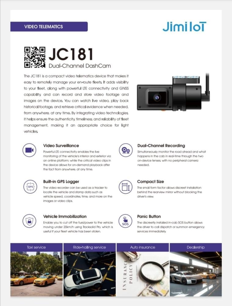 إذا كنت تبحث عن داش كام ذكية توفر لك بث مباشر فوري، ومراقبة دقيقة لما يحدث داخل سيارتك وخارجها، فإن كاميرا المراقبة JiMi jc181 هي الخيار الأمثل لك. تتميز هذه الكاميرا بنظام تصوير ثنائي القناة (أمامي + داخلي) بدقة عالية، مع دعم كامل لتقنية 4G + GPS، مما يمكنك من متابعة مركبتك في أي وقت ومن أي مكان عبر تطبيق جوال متطور وسهل الاستخدام.