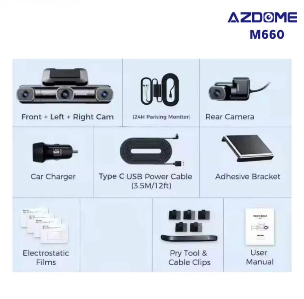 تمتع بأقصى درجات الحماية والمراقبة الذكية أثناء القيادة مع داش كام ازدوم m660، المزودة بـ 4 كاميرات بزاوية واسعة لتمنحك رؤية كاملة للطريق. الكاميرا مصممة لتناسب السائقين الذين يبحثون عن تغطية احترافية، تسجيل عالي الدقة، واتصال سهل مع الهاتف.